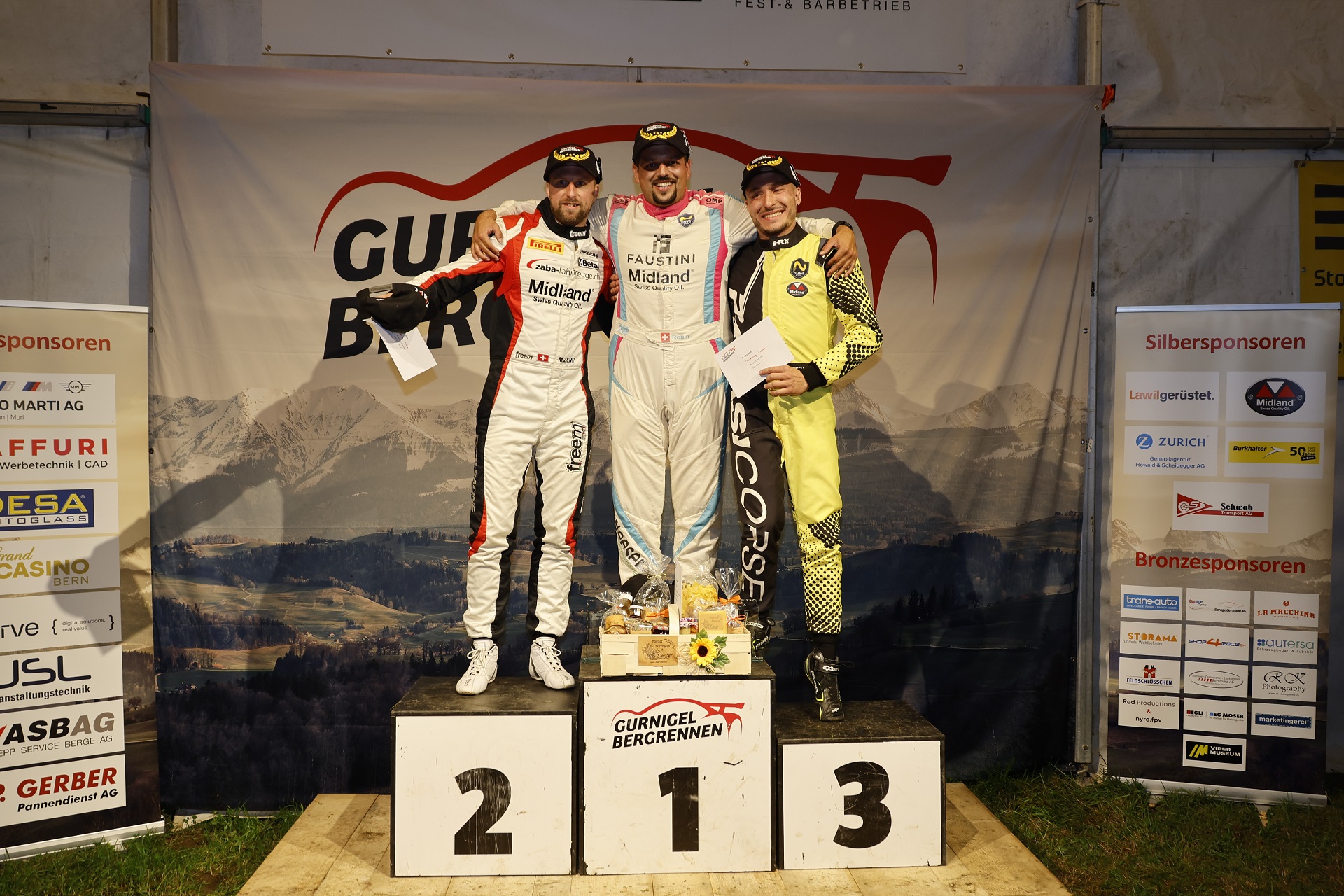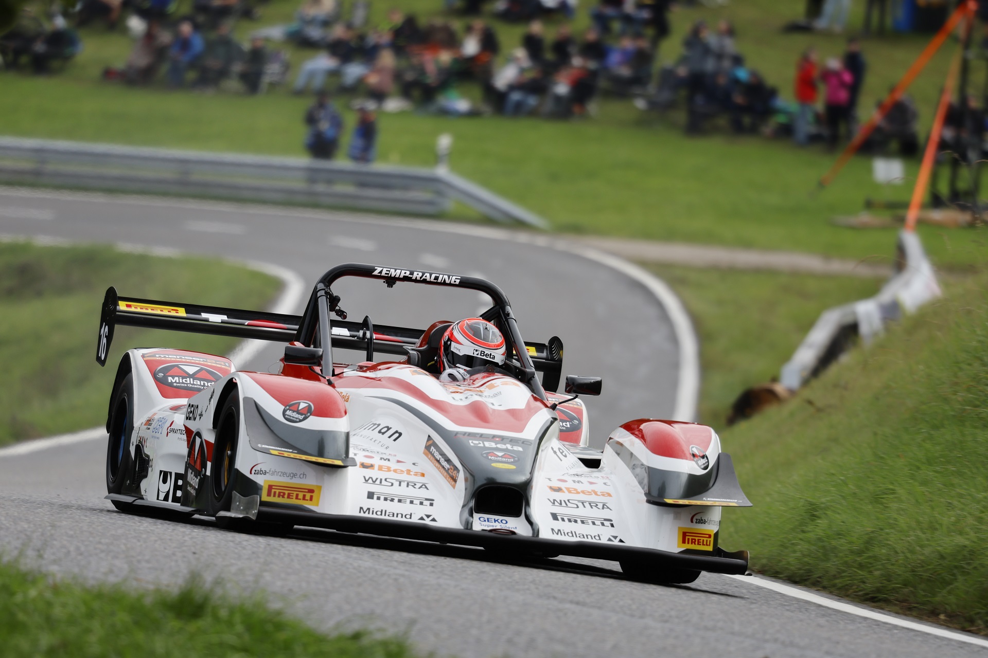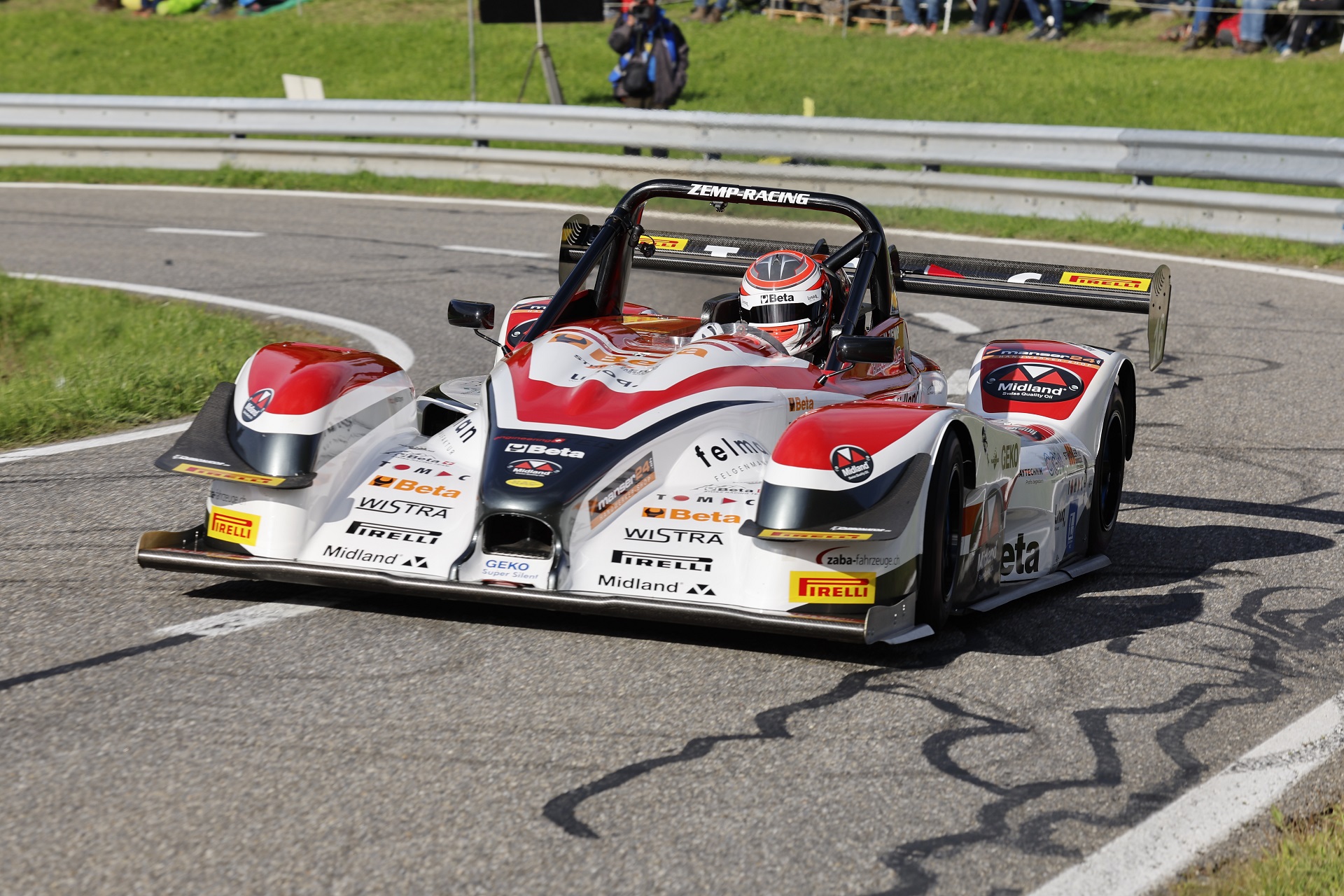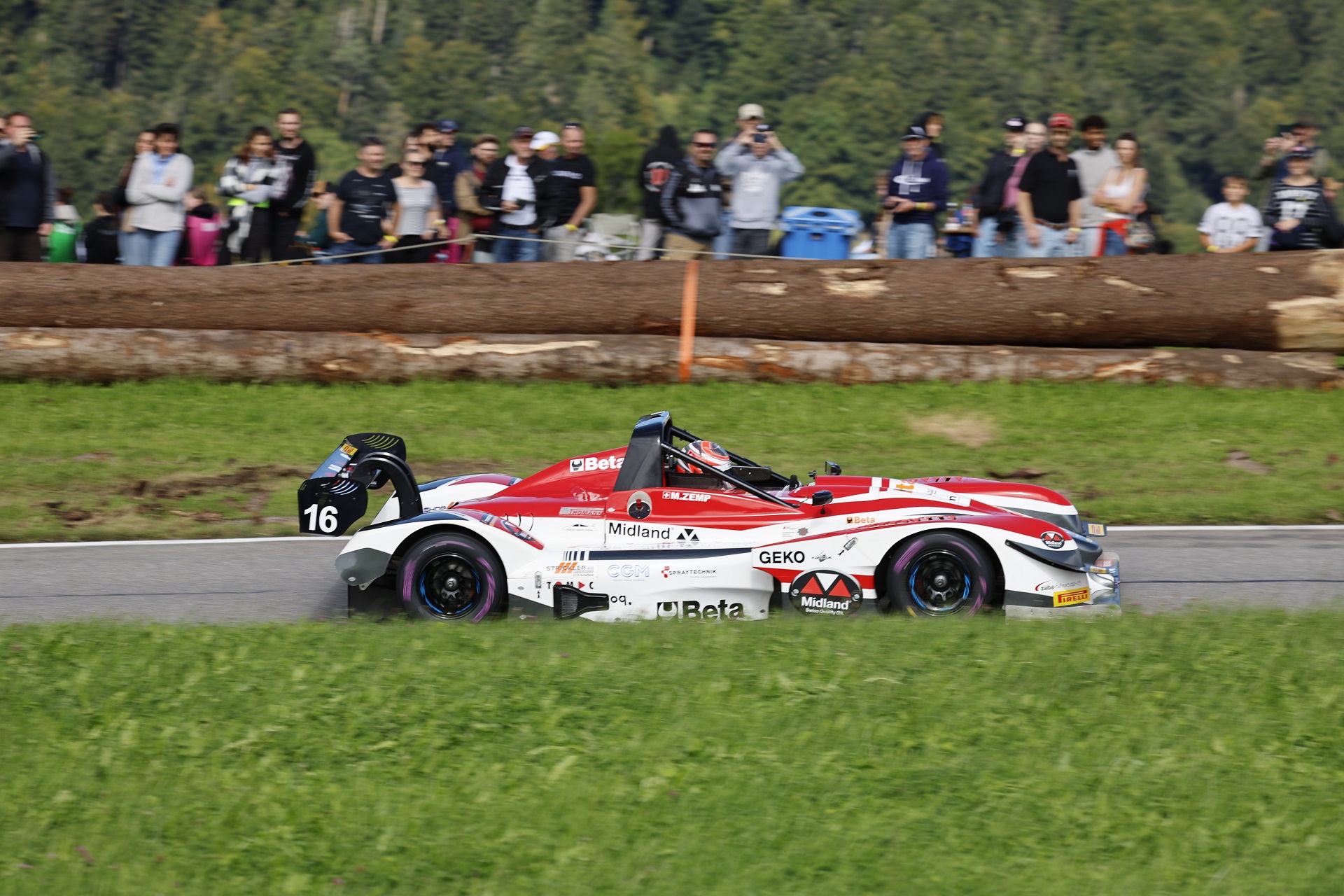 Da der Regen am Morgen aufgehört hatte und die Strecke langsam abtrocknete, hofften alle auf noch 2 Rennläufe. Die Sonne trocknete die offenen Streckenabschnitte schnell, aber in den Waldpassagen und vor allem in der 1. Kurve nach dem Start wars beim 2. Rennlauf noch feucht, beziehungsweise nass. Das bedeutete Angriff auf trockenen Abschnitten und dosieren in den nassen Abschnitten. Dies gelang mir mit 1.45.770 zu wenig gut, denn Darbellay fuhr mit 1.44.332 wieder schneller als ich. Faustini lag unerreichbar für alle an der Spitze. Amweg fuhr mit technischem Problem eine 1.46er Zeit und Steiner hatte in der ersten Kurve einen Dreher zu verzeichnen. Somit begannen wir 2 Liter Piloten Podestplätze zu schnuppern. Nur musste ich das Blatt noch umdrehen. Noch einmal bereiteten wir den Norma Helftec-Honda perfekt vor und ich konnte nach einer Fahrt ohne Fehler mit 1.44.169 mit neuem Klassenrekord die Spitze in der 2 Liter Klasse übernehmen. Sieg in der Klasse bis 2 Liter, im Scratch hinter Faustini und vor Darbellay auf Platz 2, einfach der Hammer!