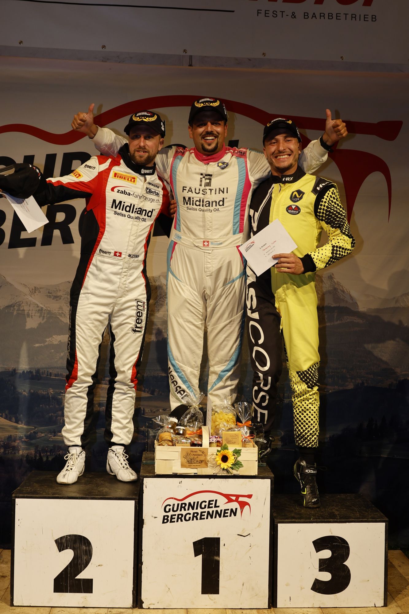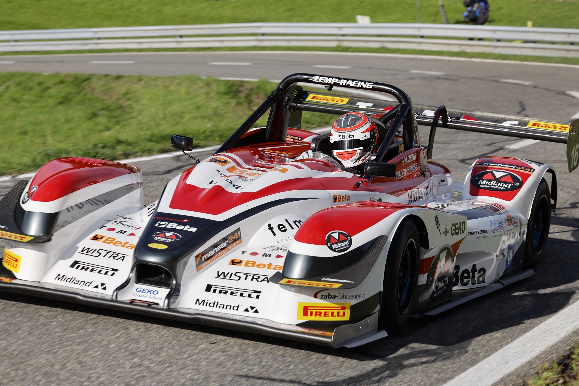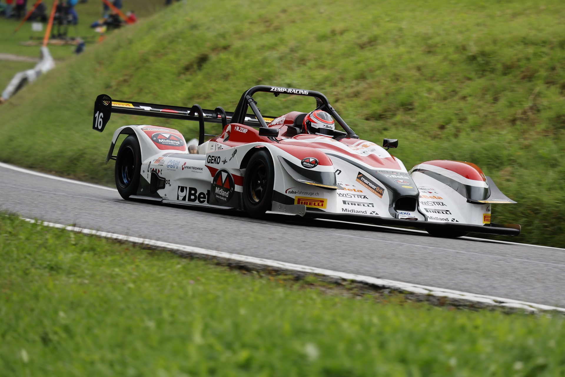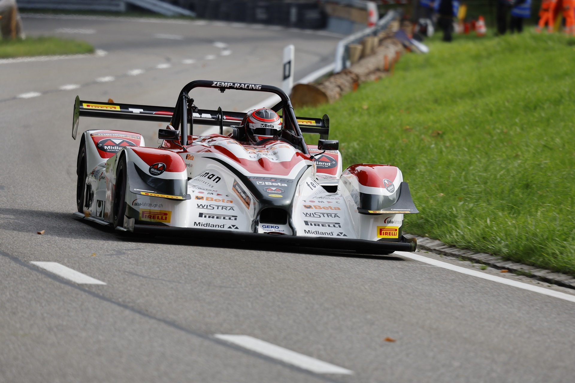 Da der Regen am Morgen aufgehört hatte und die Strecke langsam abtrocknete, hofften alle auf noch 2 Rennläufe. Die Sonne trocknete die offenen Streckenabschnitte schnell, aber in den Waldpassagen und vor allem in der 1. Kurve nach dem Start wars beim 2. Rennlauf noch feucht, beziehungsweise nass. Das bedeutete Angriff auf trockenen Abschnitten und dosieren in den nassen Abschnitten. Dies gelang mir mit 1.45.770 zu wenig gut, denn Darbellay fuhr mit 1.44.332 wieder schneller als ich. Faustini lag unerreichbar für alle an der Spitze. Amweg fuhr mit technischem Problem eine 1.46er Zeit und Steiner hatte in der ersten Kurve einen Dreher zu verzeichnen. Somit begannen wir 2 Liter Piloten Podestplätze zu schnuppern. Nur musste ich das Blatt noch umdrehen. Noch einmal bereiteten wir den Norma Helftec-Honda perfekt vor und ich konnte nach einer Fahrt ohne Fehler mit 1.44.169 mit neuem Klassenrekord die Spitze in der 2 Liter Klasse übernehmen. Sieg in der Klasse bis 2 Liter, im Scratch hinter Faustini und vor Darbellay auf Platz 2, einfach der Hammer!