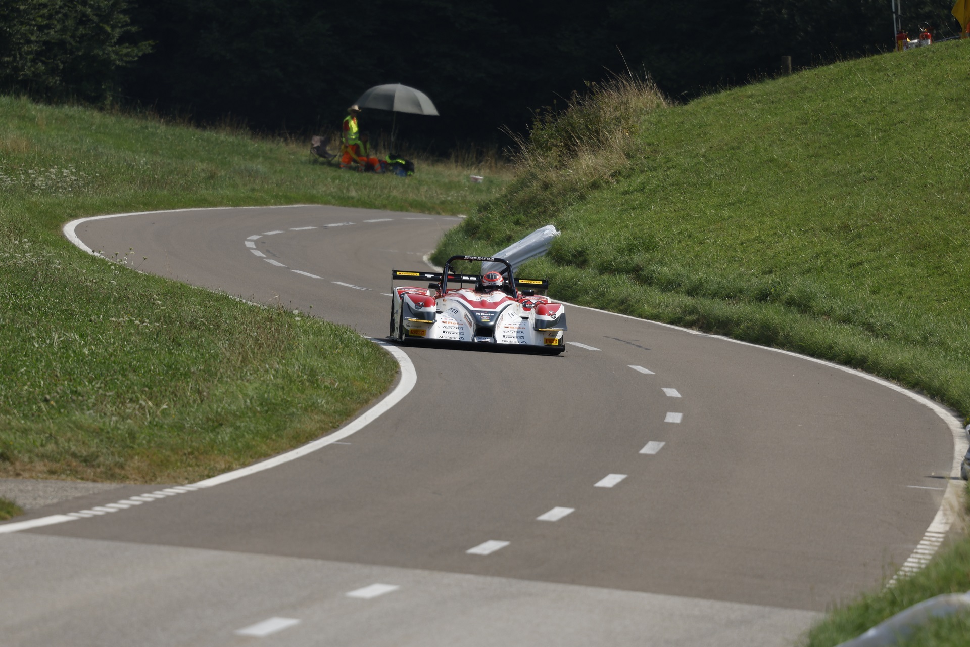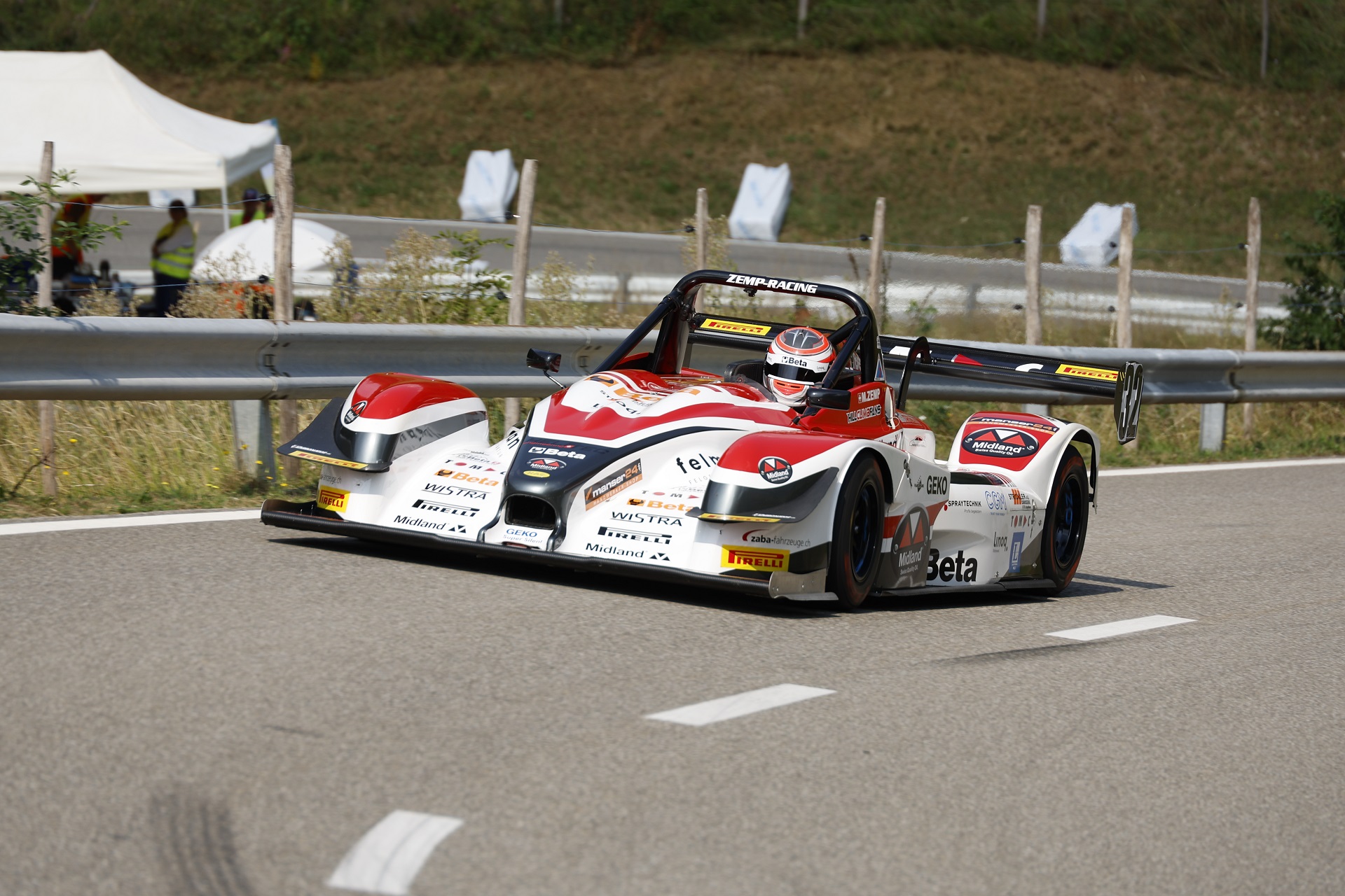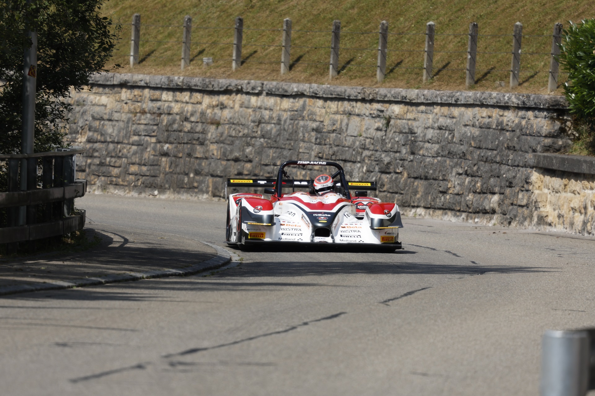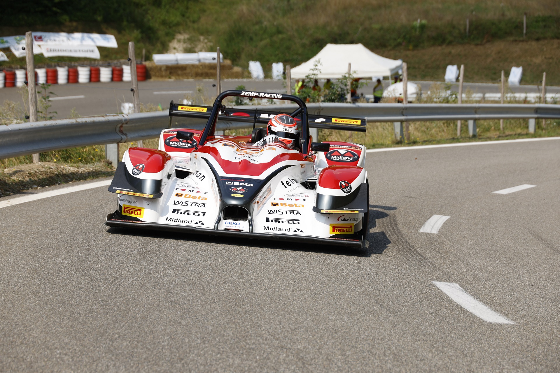 Der Sonntag startete bewölkt, es gab viele Verzögerungen im Zeitplan und unser Feld startete mit einiger Verspätung zum 1. Rennlauf, wieder bei schönstem Sommerwetter. Ich wollte die Erkenntnisse vom Trainingssamstag umsetzen und das gelang mir ausgezeichnet. Der Norma verhielt sich ruhig und ich konnte richtig pushen. Mit einer super Zeit von 1.46.112 setzte ich mich klar vor Darbellay, der 1.48.899 auf die Strecke brachte. Da der Nachmittag ebenfalls von Unterbrüchen geprägt war, zum Glück bei zum Teil schweren Unfällen ohne Personenschäden, startete ich um 19:30 zum 2. Rennlauf. Die Bedingungen waren bei kühleren Temperaturen besser und ich konnte mich nach einer perfekten Fahrt auf eine Hammerzeit von 1.45.480 steigern, dies ist neuer Schweizer Klassenrekord. Darbellay fuhr 1.47.172 und lag klar zurück. In der Schweizer Wertung lag ich somit im Gesamtklassement auf dem 3. Platz und in der Klasse E2-SC bis 2000ccm klar an der Spitze. Die Arbeiten am Norma machten sich bezahlt und das Vertrauen ins Auto war da, was auf dieser schnellen Strecke wichtig ist.